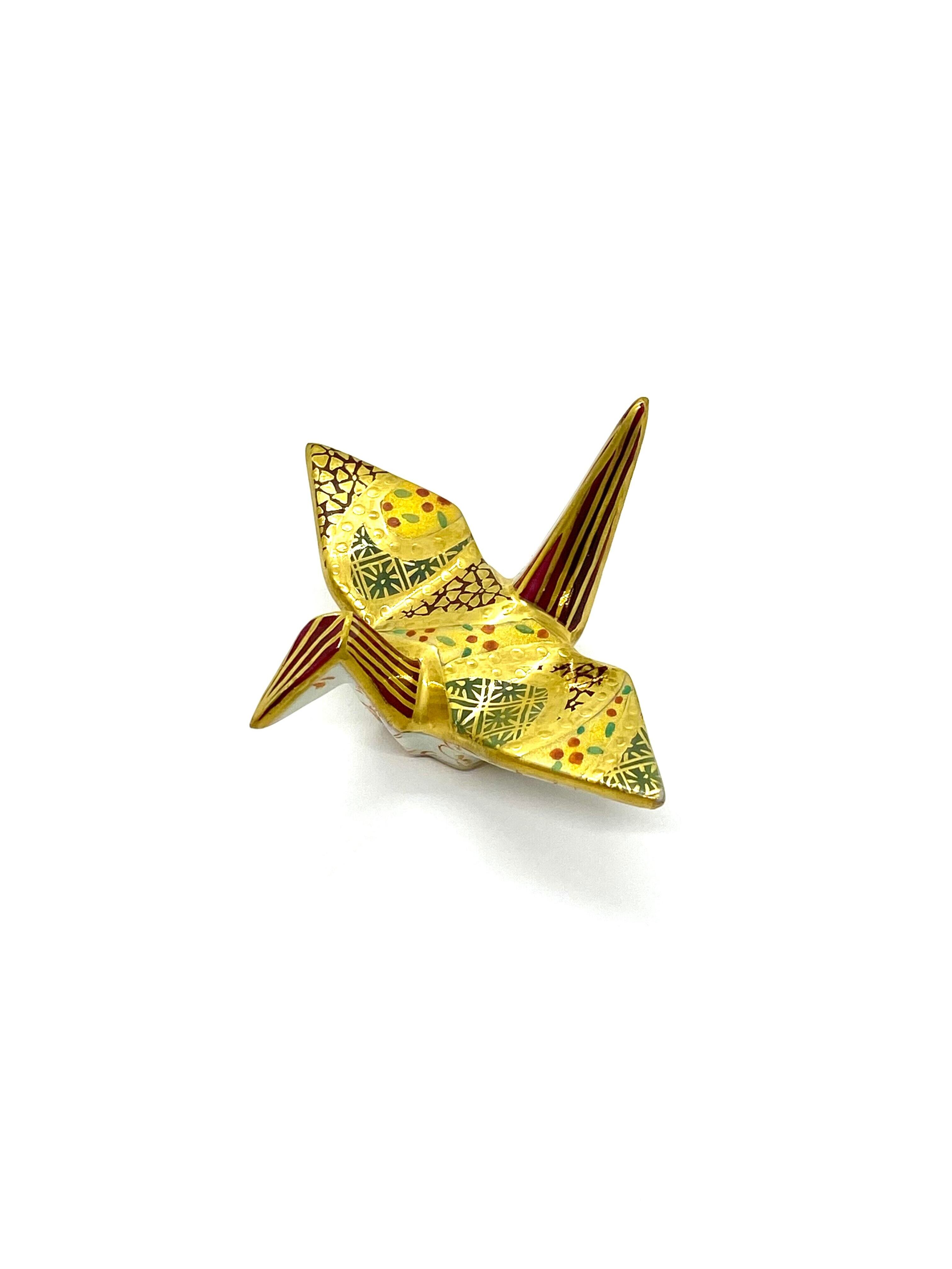 流水をイメージした金彩と鮮やかな配色の調和が美しい鶴の箸置きになります。