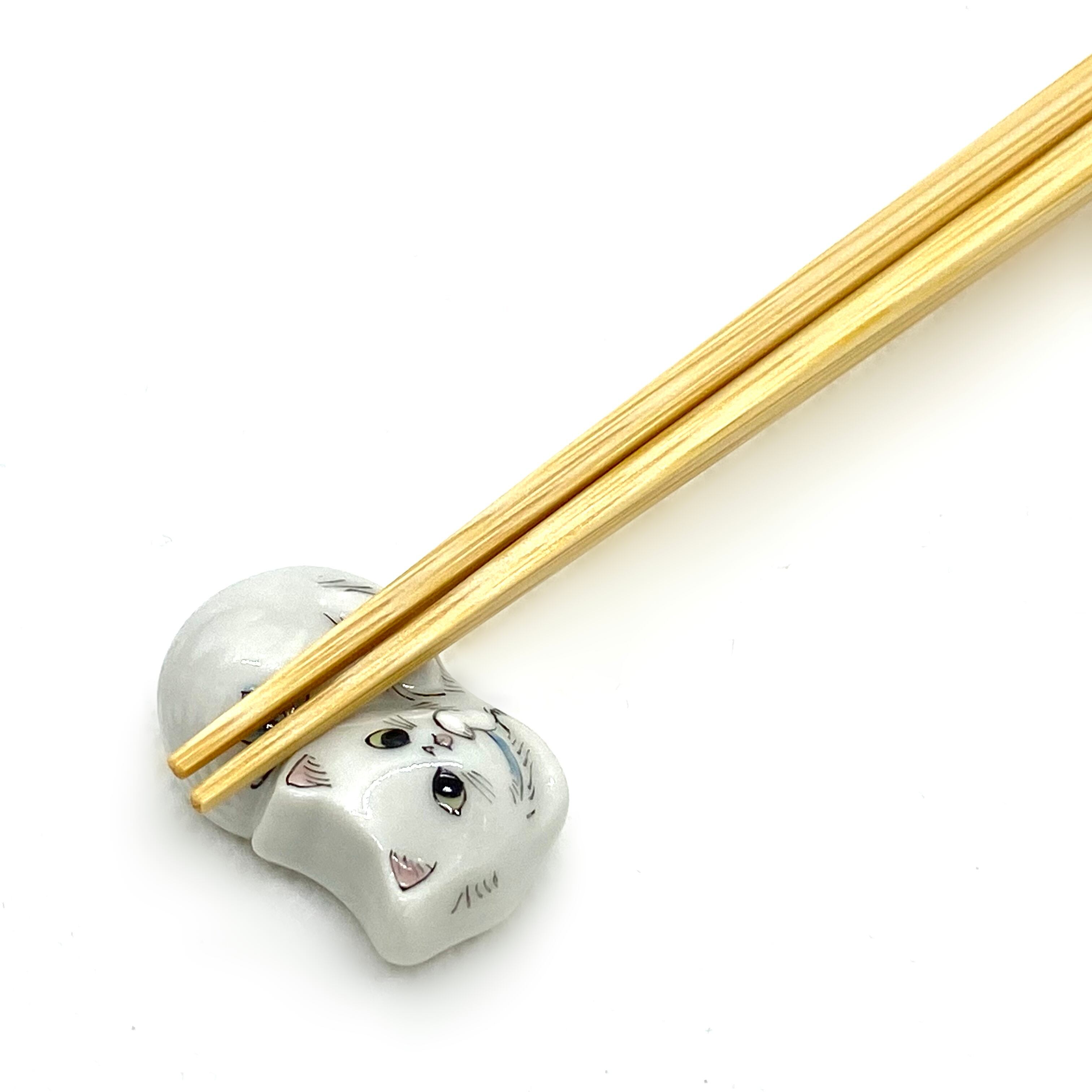 オシャレで綺麗好きな長毛の白猫のお箸置きです。